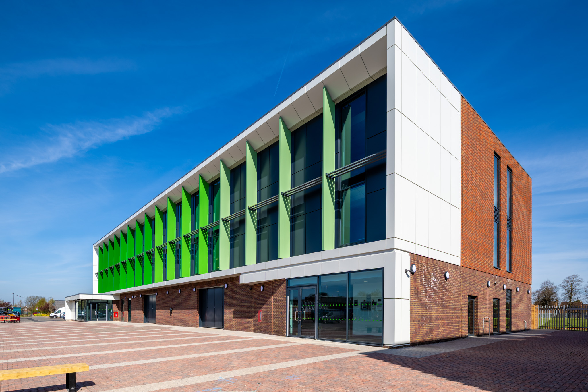 Aerofoil blades from the brise soleil range were installed at Bingham Sports Centre as a bold architectural feature, marking the second time these systems have been used primarily for visual impact.